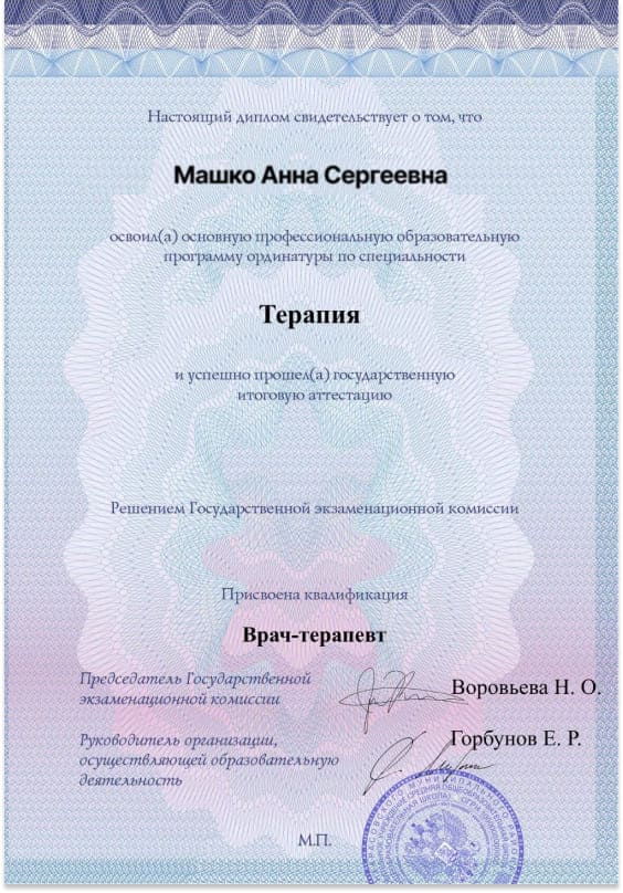 • 2019 — Ростовский государственный медицинский университет (психиатрия-наркология)